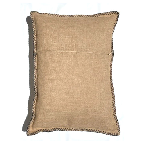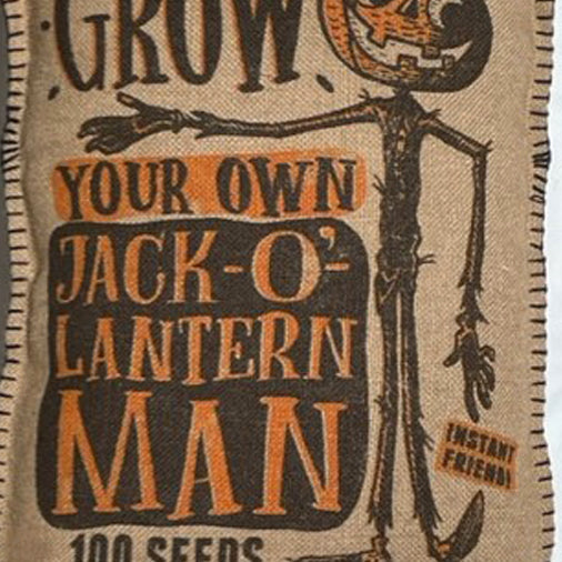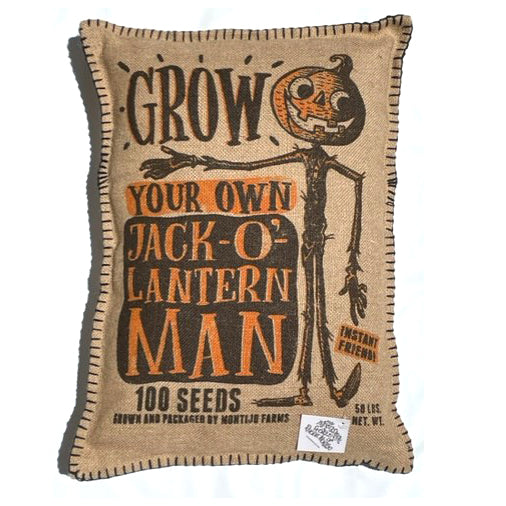 Grow your own Jack-O'-Lantern Man with this kooky-cool cushion! Printed on a burlap material with a vintage-inspired graphic, this cushion also comes with an inserted pillow that can be removed. Measures 11 x 17 inches and comes with a zipper on the back and potato-sack style black stitching on the sides. Add a bit of spooky-fun to your decor!