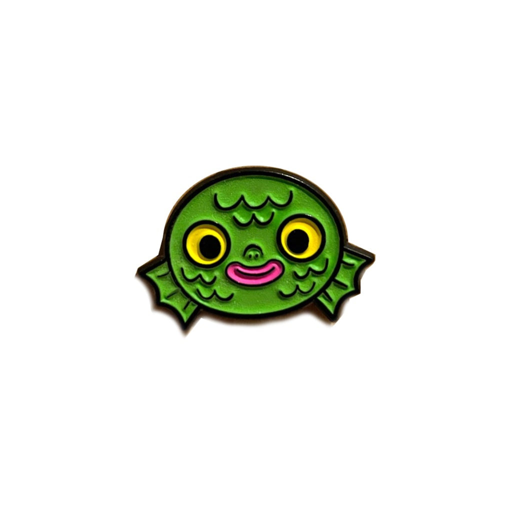 This little guy is gleaming with neon colors and is all smiles! This is a 1 inch button with embossed signature on the back.