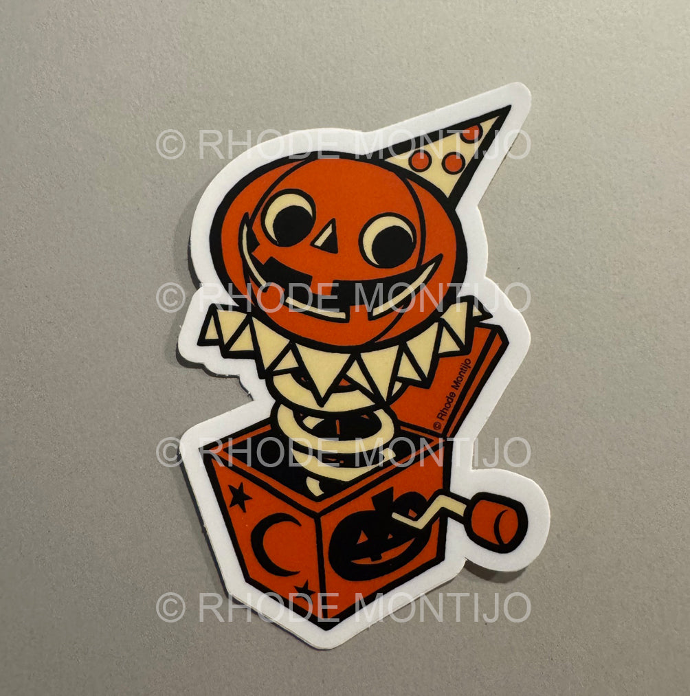 Add a pop of whimsy with this fun twist on the classic Jack-In-The-Box sticker! Measures 4 inches with a satin finish.